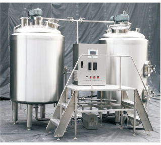 精釀啤酒實(shí)驗設(shè)備包括機(jī)架和安裝在機(jī)架上的冰水罐、糖化罐、發(fā)酵罐和冷卻系統(tǒng);產(chǎn)品的冰水罐有冰水內(nèi)罐和冰水外罐,冰水內(nèi)罐和冰水外罐之間安裝有水處理裝置;產(chǎn)品的冰水內(nèi)罐和糖化罐之間、糖化罐和發(fā)酵罐以管道相連,管道上安裝有閥門、流量計和麥汁泵;產(chǎn)品的糖化罐和發(fā)酵罐中安裝有攪拌機(jī)、加熱機(jī)構(gòu)、溫度傳感器和冷卻機(jī)構(gòu),產(chǎn)品的發(fā)酵罐上還有觀察窗、出酒口、壓力表、壓力調(diào)節(jié)表和試酒口;產(chǎn)品的冷卻系統(tǒng)包括制冷機(jī)組、冰水泵、三通閥門、流量計、水壓表、安裝于糖化罐和發(fā)酵罐中的降溫盤管。精釀啤酒實(shí)驗設(shè)備適用于各種精釀啤酒配方的實(shí)驗和開發(fā),成本小,功能齊全。