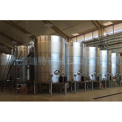 果酒發(fā)酵罐的結(jié)構(gòu)特點(diǎn):采用鏡面板套進(jìn)行冷卻,通過溫度控制探頭,液位控制探頭,制冷劑電磁閥,罐體計(jì)算機(jī)系統(tǒng)設(shè)置,根據(jù)發(fā)酵罐的容量不同而不同。設(shè)計(jì)冷卻區(qū)實(shí)現(xiàn)了發(fā)酵過程的自動溫度控制,以快速,高效地完成罐中培養(yǎng)基的冷卻和控制。